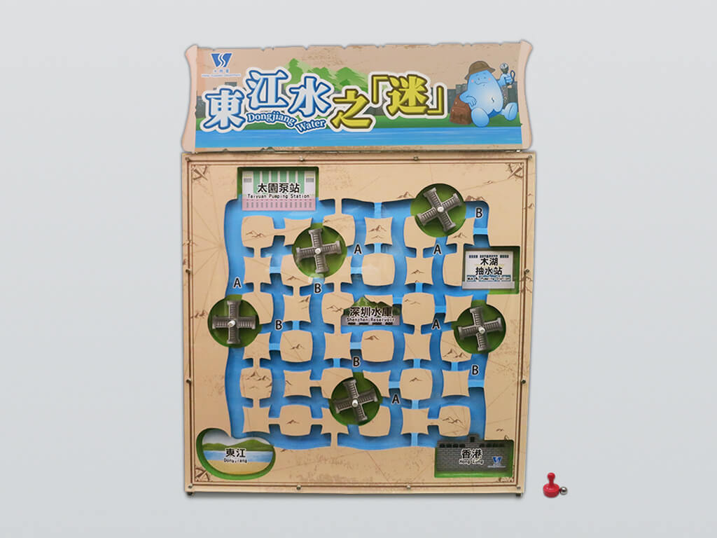 迷宮上有5個分岔位,玩家每到分岔位時需回答關於東江水的二選一問題,並按照自己的選擇答案轉動輸水管道,利用磁力棒繼續移動磁珠。
