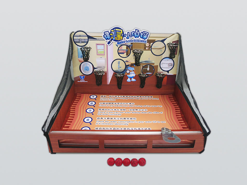 玩家需根據底板上的指示,利用發射台將小籃球投進5個正確偵測食水滲漏的籃球框。