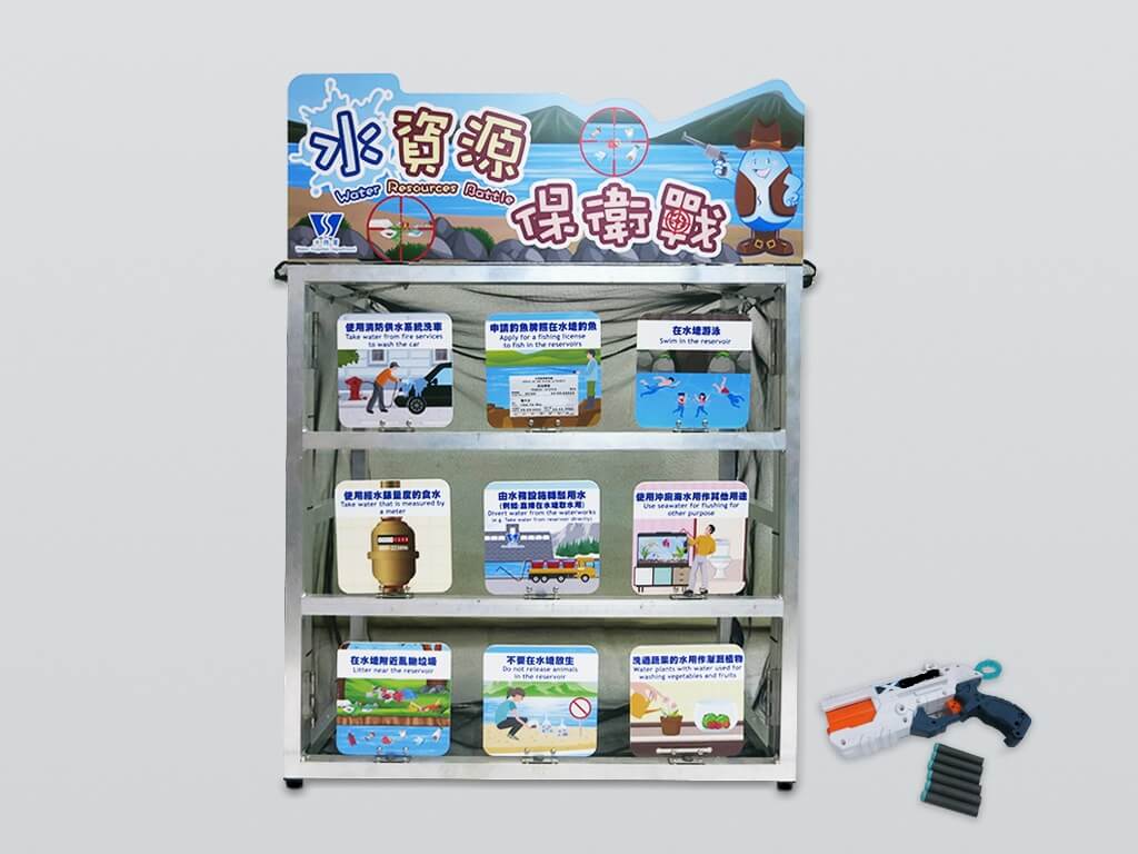 玩家需找出非法取水或污染水資源的行為,並於限時內利用玩具槍射倒相應的5個鏢靶。