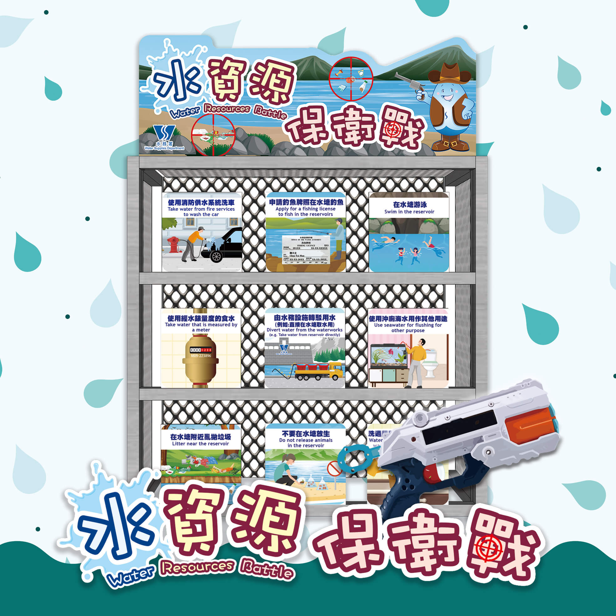 為了提升學習節約用水及水資源知識的趣味,水務署自2016年起為團體或學校提供攤位遊戲借用服務,各界反應熱烈。有見及此,水務署於2021/22學年重新設計遊戲,加入新的遊戲主題並增加遊戲趣味,期望大眾可以從遊戲中學到惜水知識。