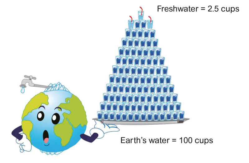 Fresh water is a precious natural resource. Less than 2.5% of the world’s water is fresh water while the rest is seawater. In a nutshell, suppose Earth’s water is represented by 100 cups, only 2.5 cups are fresh water. But still, not all of the fresh water can be used. Among the fresh water resources in the world, a large part of it is the polar ice caps that have not yet melted. Therefore, less than 1% of the water mass is accessible by mankind in the form of fresh water.