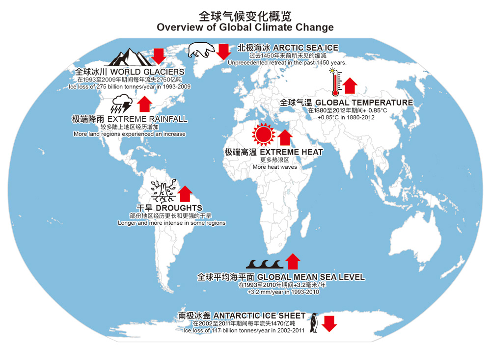 气候变化,是指自然气候变化之外,人类活动引致大气组成改变所导致的气候变化。主要是因为使用化石燃料,人类活动令大气中温室气体浓度上升,继而引致一连串的全球现象,包括全球暖化、海平面上升、冰川融化及极端天气事件增多等。