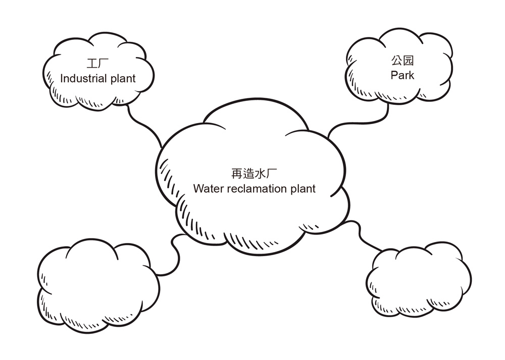 - 设计并画出可持续社区的地图,而上述产业和设施是围绕再造水厂和其他所需设施建造。