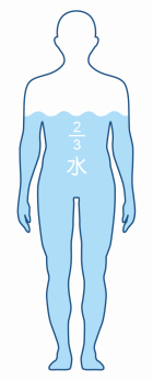 水占人体重量的三分之二。没有水,人类便难以生存。人脑由95% 水分组成,血液由82% 水分组成,肺部则由90% 水分组成。人体内的水供应仅减少2%,身体便会出现脱水症状。
