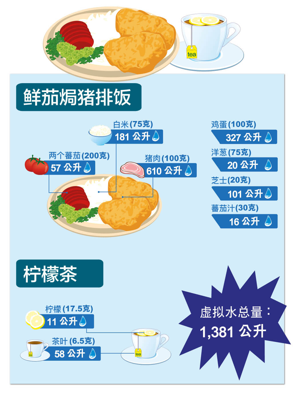在日常生活中,我们好像只在喝水、洗澡和清洁才用到水。然而,制造我们所需的食物、衣服、纸张等用品原来都需要耗用大量的水。我们所消耗的水远远超过肉眼可见的份量,因为背后还有大量大家或会忽略的隐藏用水,即那些生产食物及商品时所需要的水,我们称之为「虚拟水」。