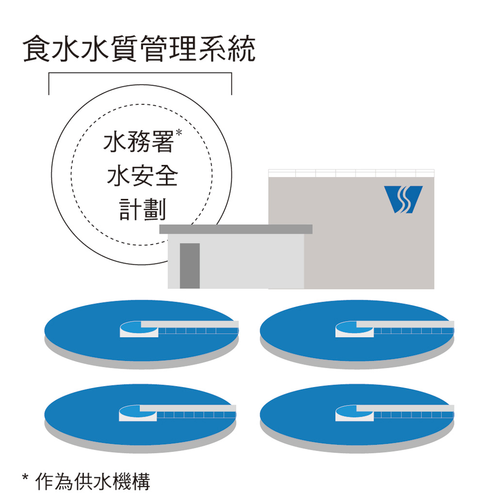 2007年,水務署已根據世衞準則制定及實施該署的水安全計劃,以確保源頭至分配系統的食水水質,並清楚說明其在內部水管系統的規管、監察及諮詢角色。