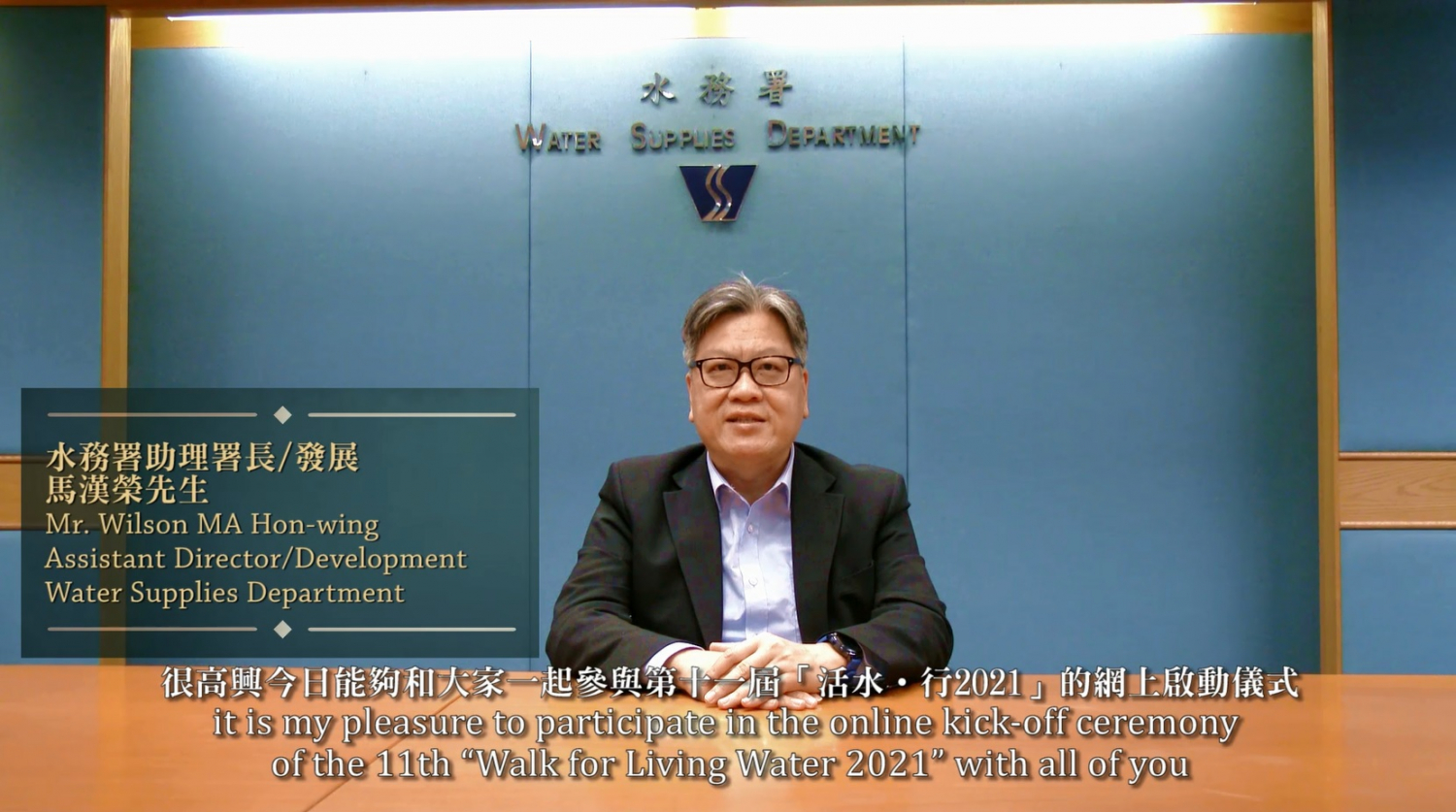 作為活動的協辦機構,水務署助理署長/發展馬漢榮先生於網上啟動儀式致辭,宣揚節約用水的訊息,並鼓勵市民踴躍參與活動,共襄善舉。