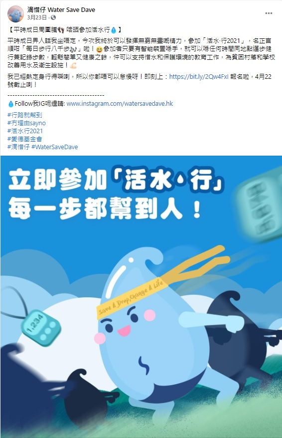 「活水‧行」是每年為響應聯合國「世界善用食水日」,提升公眾對全球水危機的關注而舉辦的活動,亦是「氣候變化 香港行動」活動之一。