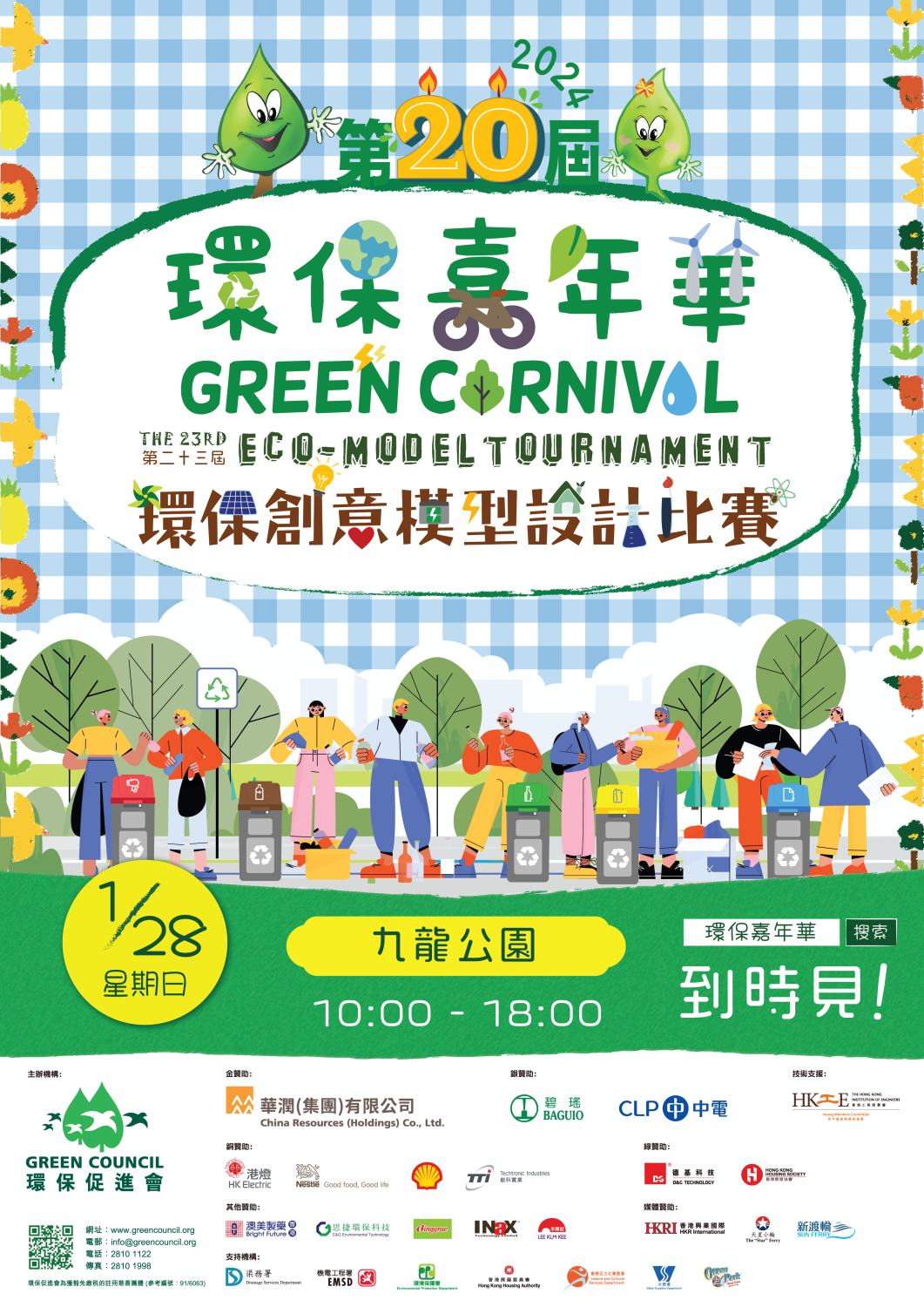 由環保促進會主辦的第20屆「環保嘉年華」,於2024年1月28日假九龍公園順利舉行,超過30間企業、學校及機構的支持及參與,鼓勵大眾市民減少資源浪費,節省用電和水,從而減少溫室氣體排放,保護環境。第23屆「環保創意模型設計比賽」亦同場舉行,鼓勵中小學生發揮創意,利用回收材料製作模型車,提高環保認知和參與。